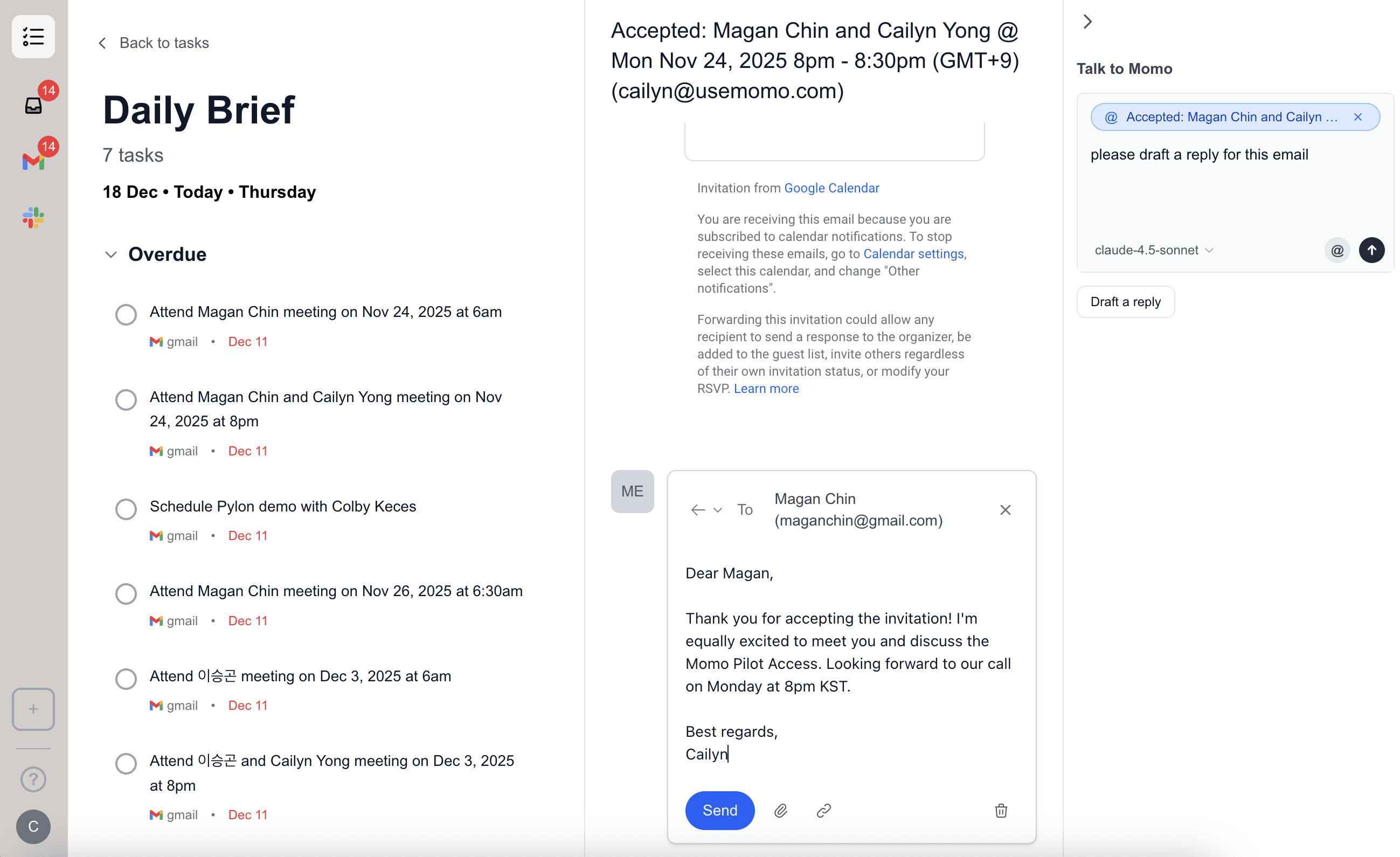 To give you a brief introduction of Momo, Momo started off as an AI chief of staff for founders back in May. To understand what kind of tasks personal assistants were doing, I worked as an assistant myself during summer break (June-September). Based on my experience, here were the few things I realized: